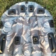Mustat kahvat tekevät siitä kätevän kantamisen ja antavat sinulle otteen alustasta ohjaaessasi jaloillasi minne haluat. Sivuilta löytyy kaksinkertainen joustava hihna, joten voit kiinnittää naamiointipäällisen. Löydät runsaasti d-renkaita hihnan tai kuminauhan kiinnittämiseen tarvittaessa.